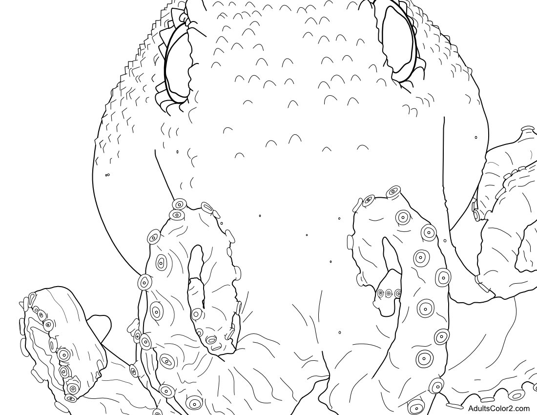 This deep dweller was filmed in the Gulf of Mexico by NOAA. Not your ordinary octopus, is it? No long tentacles for this guy! Short and stubby must be better for operating down there. Notice the appendage(s) near the eye? Those are for swimming. They look like ears but function like oars. And that's why this little guy is affectionately known as Dumbo! How can you resist coloring a page with such a cute subject? |