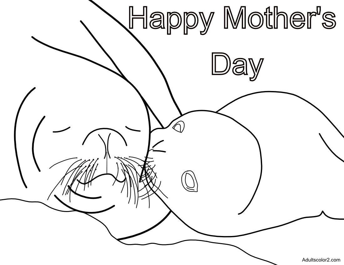 You could go for the baby seal kissing her mom coloring page. It's a tender image of motherly love.